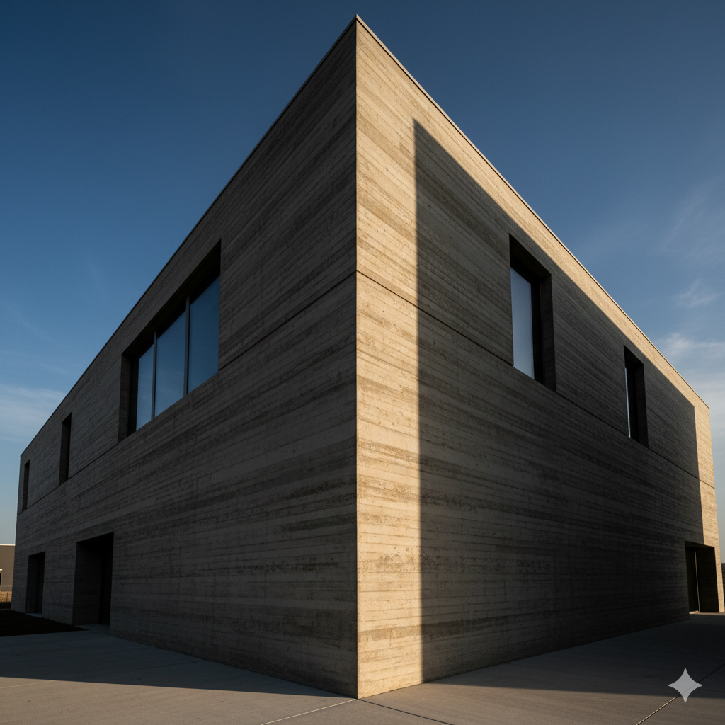 Example: "Rough board-formed concrete with a non-reflective, matte finish"
